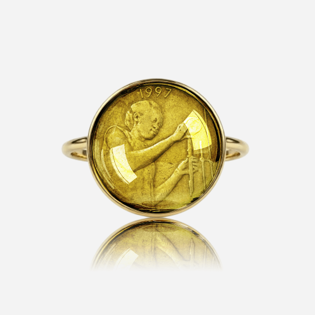 Chaque bijou raconte une histoire : née d’une ancienne monnaie qui a voyagé de main en main, elle renaît sous une nouvelle forme après une sélection minutieuse et un travail d’upcycling raffiné.