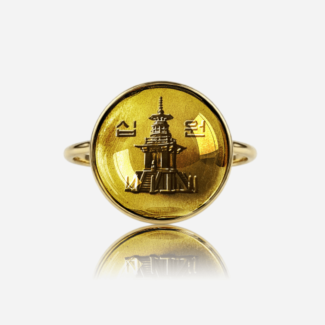 Sur l’avers de la pièce, on voit la pagode Dabotap, située à Gyeongju, l’un des trésors nationaux de Corée.