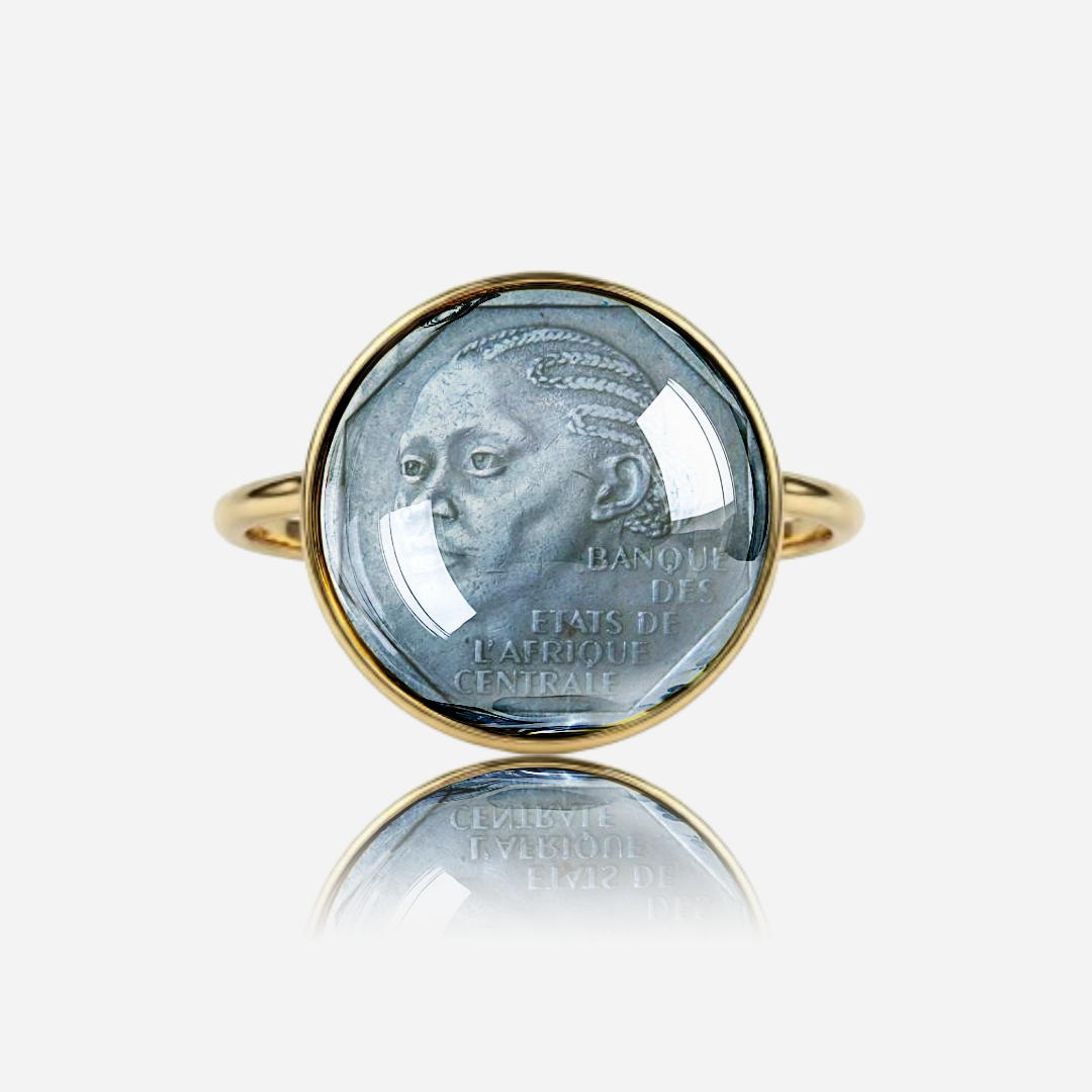 Chaque bijou raconte une histoire : née d’une ancienne monnaie qui a voyagé de main en main, elle renaît sous une nouvelle forme après une sélection minutieuse et un travail d’upcycling raffiné.