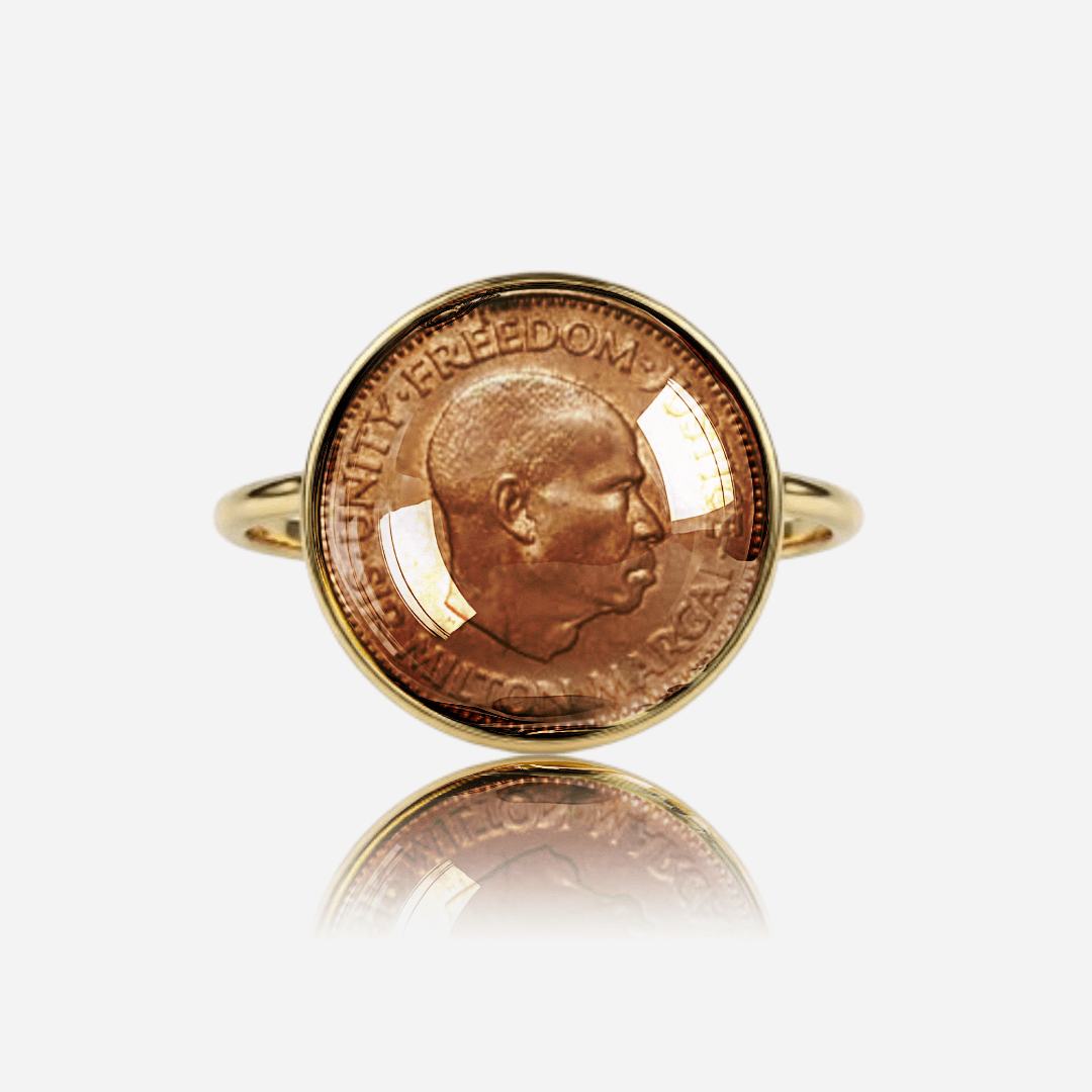 Chaque bijou raconte une histoire : née d’une ancienne monnaie qui a voyagé de main en main, elle renaît sous une nouvelle forme après une sélection minutieuse et un travail d’upcycling raffiné.