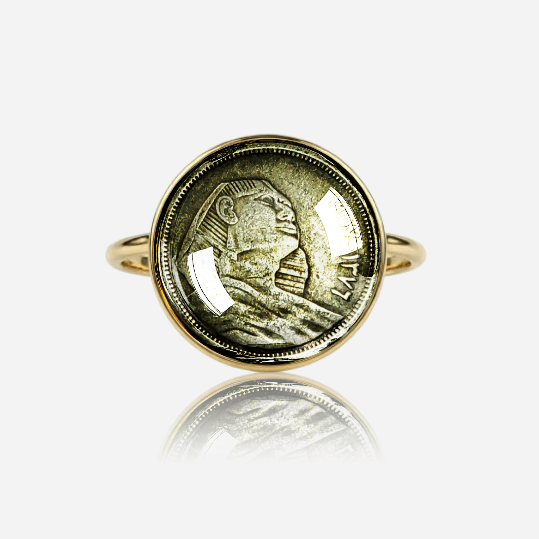 Sur la face de la pièce, on observe le Sphinx de Gizeh, symbole emblématique de l’Égypte antique représentant la continuité historique, la sagesse et le patrimoine du pays. Mise en circulation en 1956, cette pièce est inutilisée depuis les années 1970 et est devenue un objet de collection.