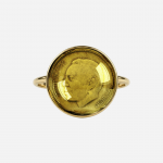 Montée sur une base en laiton doré, la bague est sublimée par un cabochon, un cylindre en verre brillant à l’éclat cristallin, garantissant confort et design travaillé.