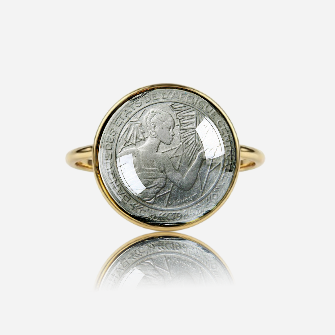 Chaque bijou raconte une histoire : née d’une ancienne monnaie qui a voyagé de main en main, elle renaît sous une nouvelle forme après une sélection minutieuse et un travail d’upcycling raffiné.